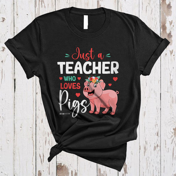 Just A Teacher Who Loves Pigs, Adorable Floral Flowers Sloth, Matching Teacher Group T-Shirt