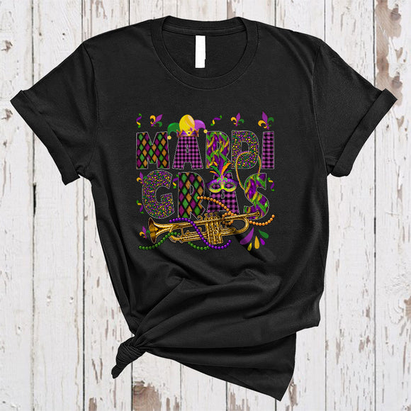 Mardi Gras, Wonderful Mardi Gras Plaid Trumpet Player, Beads Mardi Gras Parade Group T-Shirt