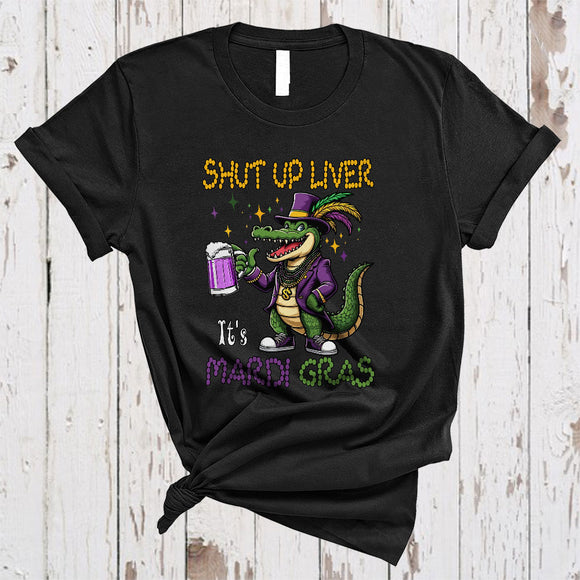 Shut Up Liver It's Mardi Gras, Amazing Mardi Gras Alligator Drinking Beer, Matching Drinking Group T-Shirt