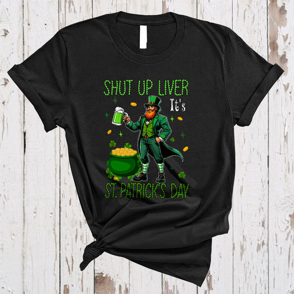 Shut Up Liver It's St. Patrick's Day, Adorable St. Patrick's Day Leprechaun Drinking Beer, Lucky Shamrock T-Shirt