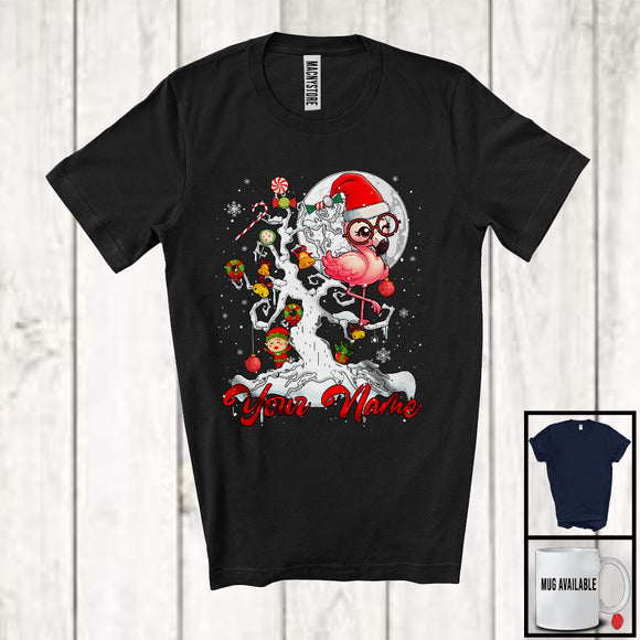Personalized Flamingo Bird Santa On Christmas Tree, Adorable ELF Snow, Custom Name Bird Lover T-Shirt