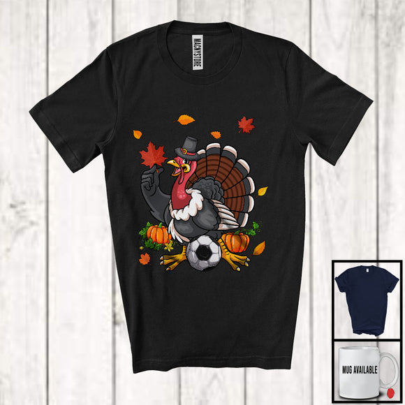 Turkey Playing Soccer, Joyful Thanksgiving Turkey Pumpkins, Matching Sport Player Team T-Shirt