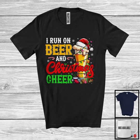 I Run On Beer And Christmas Cheer; Humorous X-mas Lights Santa Beer; Drinking Drunker T-Shirt