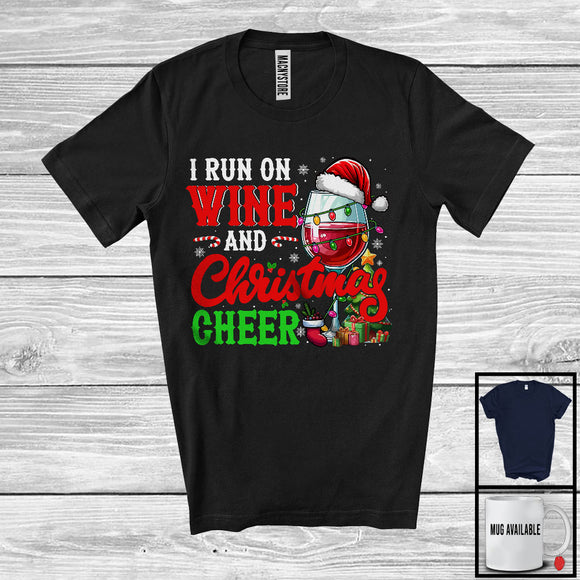 I Run On Wine And Christmas Cheer; Humorous X-mas Lights Santa Wine; Drinking Drunker T-Shirt