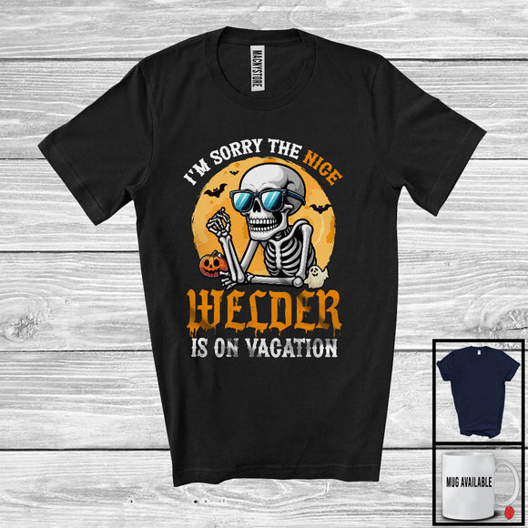 Sorry The Nice Welder Is On Vacation; Sarcastic Halloween Moon Skeleton Sunglasses T-Shirt