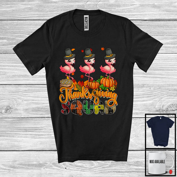Thanksgiving Squad; Adorable Plaid Pumpkin Fall Leaf Three Pilgrim Flamingos; Wild Animal Lover T-Shirt