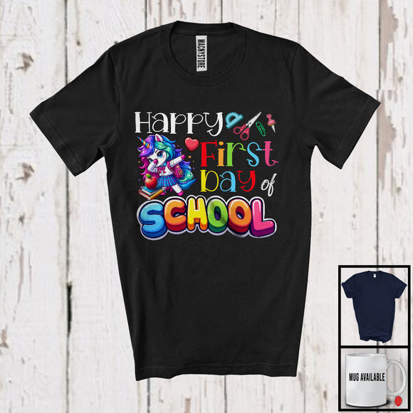 Happy First Day Of School, Adorable Back To School Dabbing Unicorn, Team Students Teachers T-Shirt