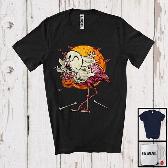 Scary Moon Flamingo Ghost With Carved Pumpkin Candy, Happy Halloween Flamingo Lover T-Shirt