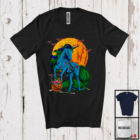 Scary Moon Unicorn Zombie With Carved Pumpkin Candy, Happy Halloween Unicorn Lover T-Shirt