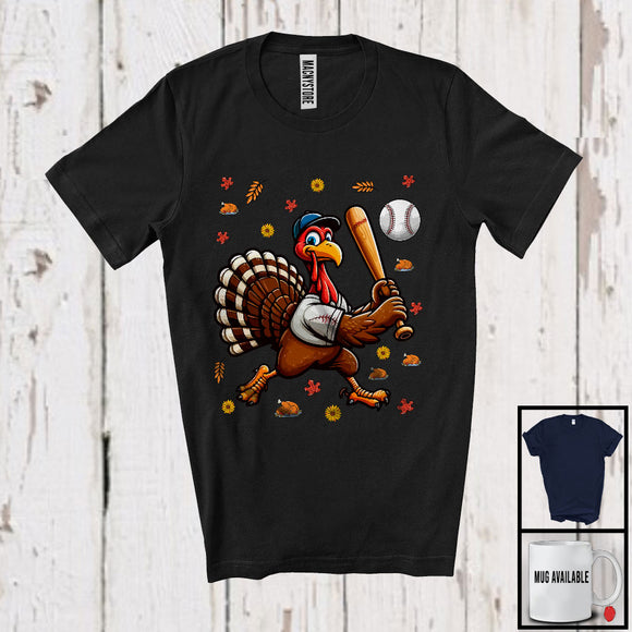 Turkey Playing Baseball, Awesome Thanksgiving Turkey Sport Player Team, Trainer Fall Leaves T-Shirt