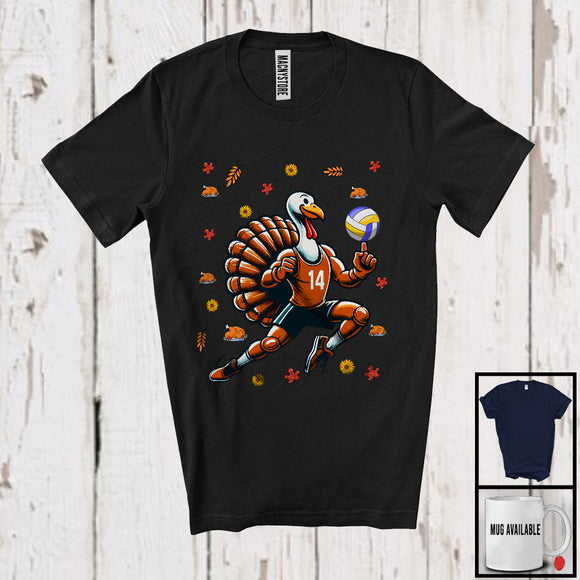 Turkey Playing Volleyball, Awesome Thanksgiving Turkey Sport Player Team, Trainer Fall Leaves T-Shirt