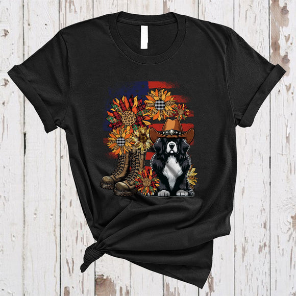 Leopard Sunflowers Newfoundland American Flag Boot, Awesome 4th Of July US Patriotic Group T-Shirt