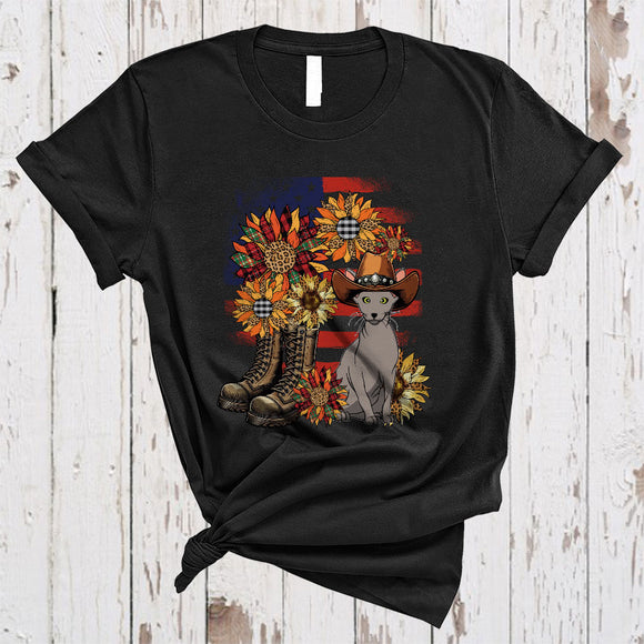 Leopard Sunflowers Peterbald American Flag Boot, Awesome 4th Of July US Patriotic Group T-Shirt