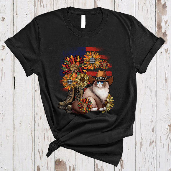 Leopard Sunflowers Ragdoll American Flag Boot, Awesome 4th Of July US Patriotic Group T-Shirt