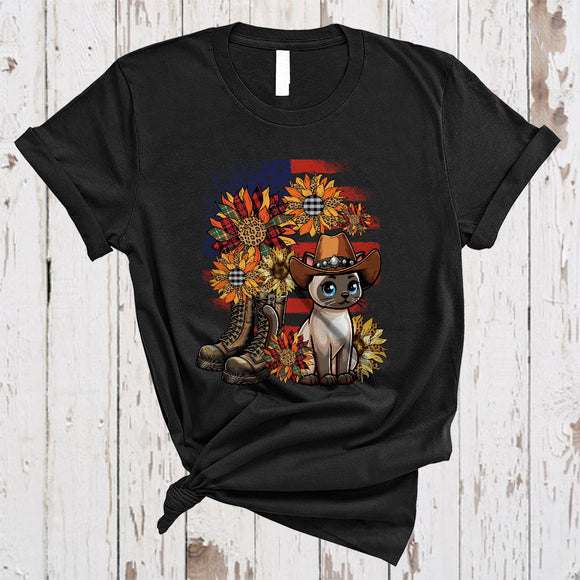 Leopard Sunflowers Siamese Cat American Flag Boot, Awesome 4th Of July US Patriotic Group T-Shirt