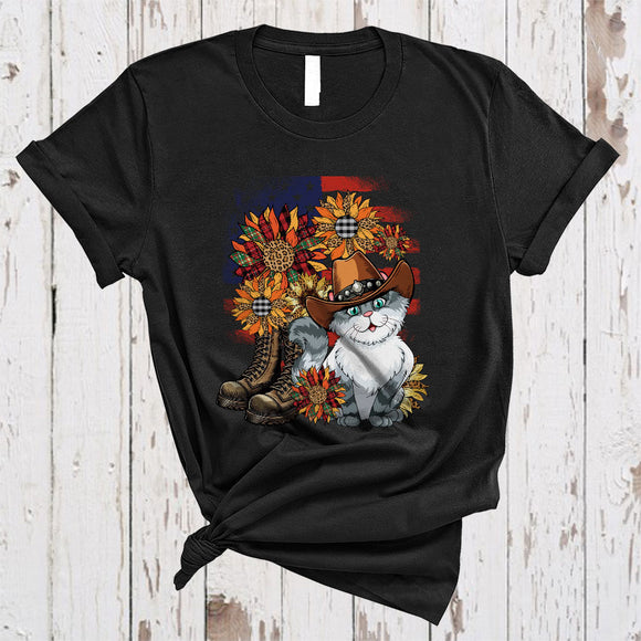 Leopard Sunflowers Siberian Cat American Flag Boot, Awesome 4th Of July US Patriotic Group T-Shirt