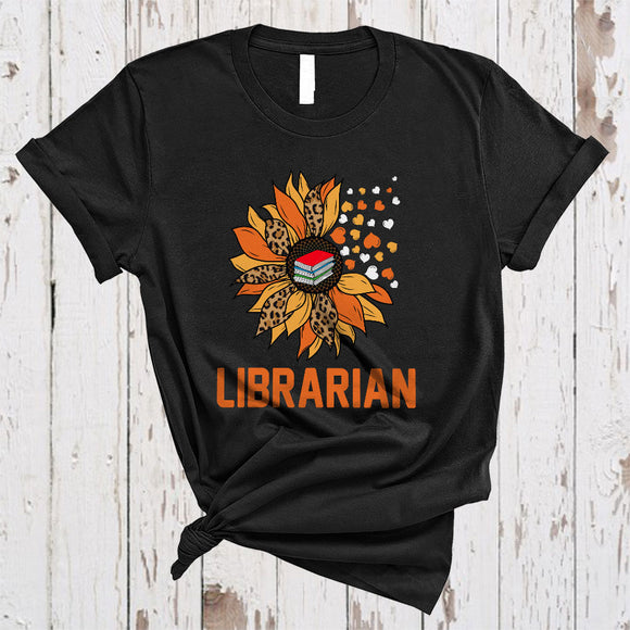 Librarian, Adorable Sunflower Leopard Hearts, Matching Librarian Family Group T-Shirt