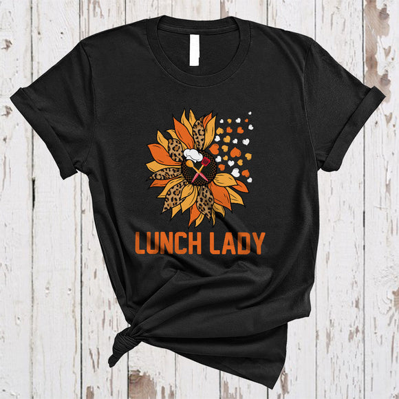Lunch Lady, Adorable Sunflower Leopard Hearts, Matching Lunch Lady Family Group T-Shirt