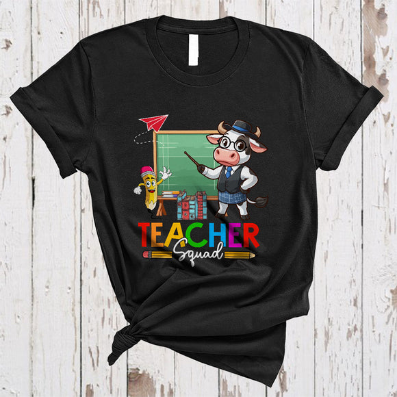 Teacher Squad, Adorable Cow Teaching Animal Lover, Matching Proud Teacher Group T-Shirt