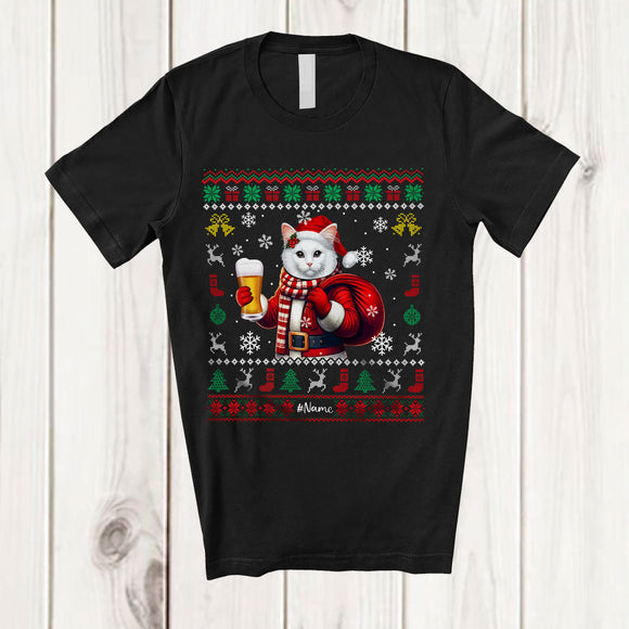 Personalized Custom Name Santa Cat Drinking Beer; Fantastic Christmas Sweater Drunker T-Shirt
