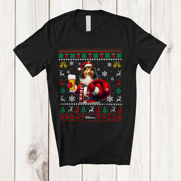 Personalized Custom Name Santa Shelties Drinking Beer; Fantastic Christmas Sweater Drunker T-Shirt