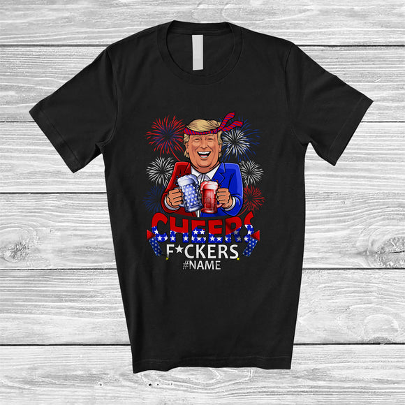 Personalized Cheers F*ckers; Amazing 4th Of July Trump Drinking Beer; Custom Name Patriotic T-Shirt