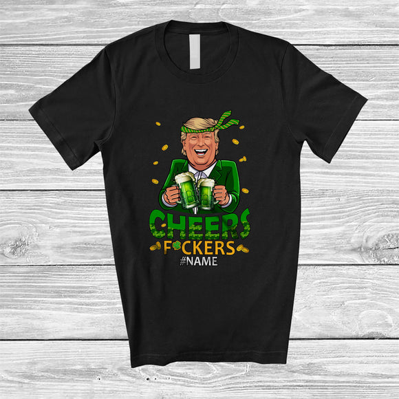 Personalized Cheers F*ckers; Amazing St. Patrick's Day Trump Custom Name Drinking Beer; Shamrocks T-Shirt