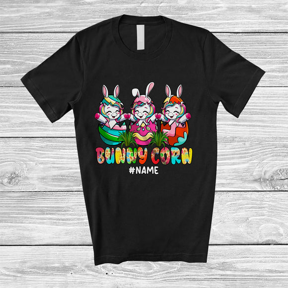 Personalized Custom Name Bunny Corn; Joyful Easter Three Bunny Unicorns In Easter Eggs; Leopard T-Shirt