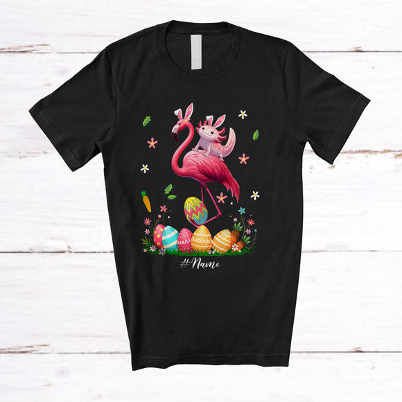 Personalized Custom Name Axolotl Ridding Flamingo; Amazing Easter Eggs Hunting; Family T-Shirt