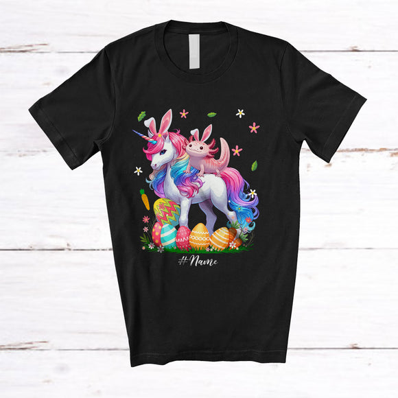 Personalized Custom Name Axolotl Ridding Unicorn; Amazing Easter Eggs Hunting; Family T-Shirt