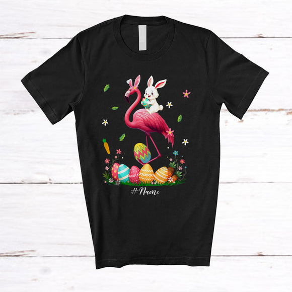 Personalized Custom Name Bunny Ridding Flamingo; Amazing Easter Eggs Hunting; Family T-Shirt