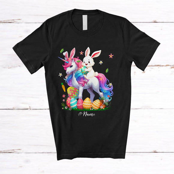 Personalized Custom Name Bunny Ridding Unicorn; Amazing Easter Eggs Hunting; Family T-Shirt