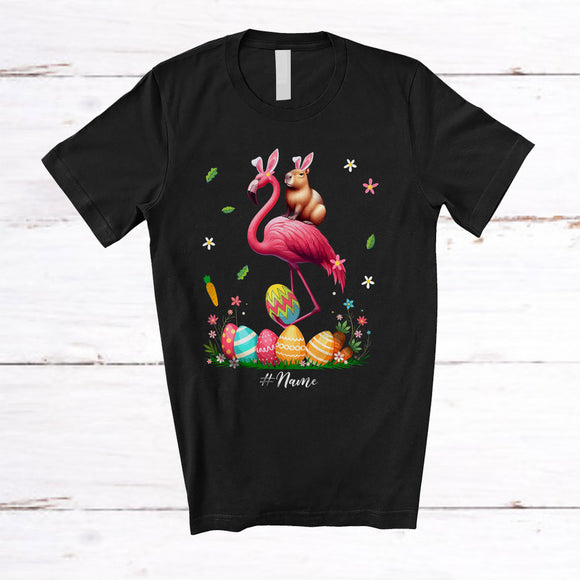 Personalized Custom Name Capybara Ridding Flamingo; Amazing Easter Eggs Hunting; Family T-Shirt