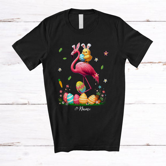 Personalized Custom Name Chick Ridding Flamingo; Amazing Easter Eggs Hunting; Family T-Shirt