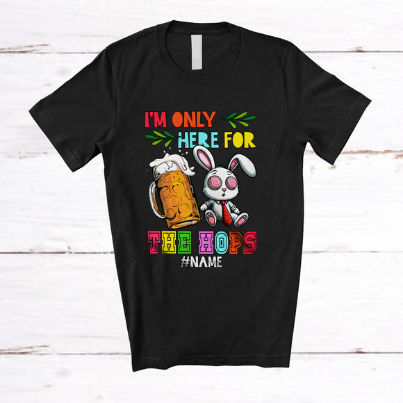 Personalized Custom Name Only Here For The Hops; Joyful Easter Drunk Bunny Drinking Beer T-Shirt