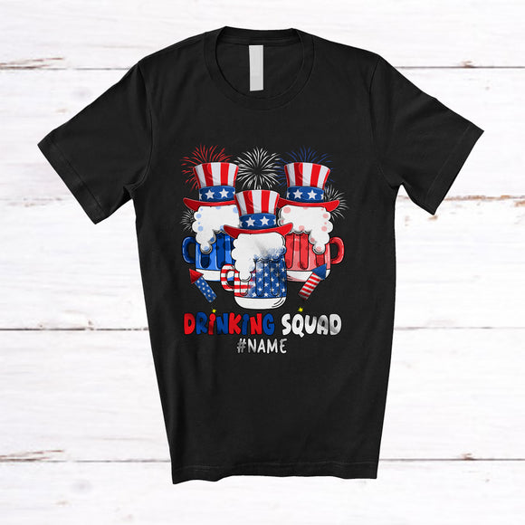 Personalized Custom Name Drinking Squad; Fantastic 4th Of July Three Glasses of Beer; Patriotic T-Shirt