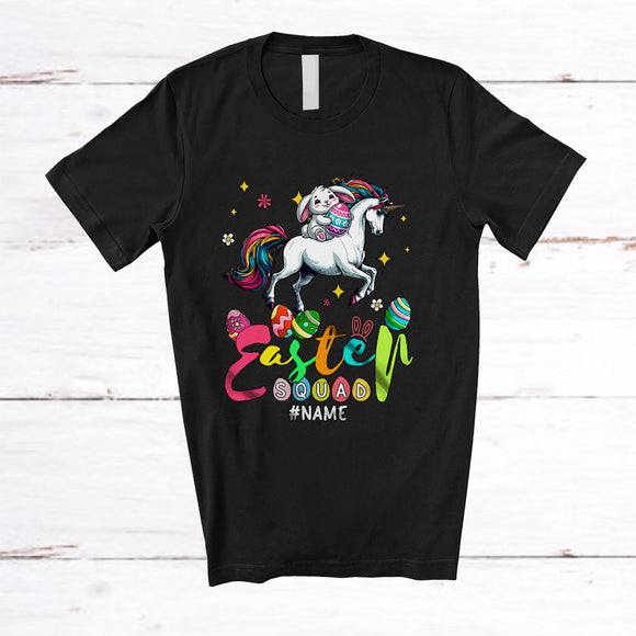 Personalized Happy Easter; Adorable Custom Name Bunny Rabbit Riding Unicorn Eggs; Family T-Shirt