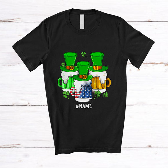 Personalized Three Glasses of Beer; Amazing St. Patrick's Day US Flag; Custom Name Drinking T-Shirt