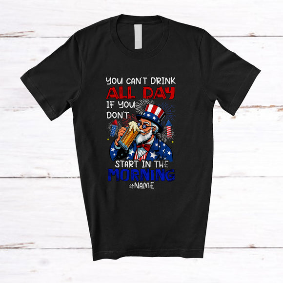 Personalized You Can't Drink All Day; Proud 4th Of July Uncle Sam Custom Name Drinking Beer T-Shirt
