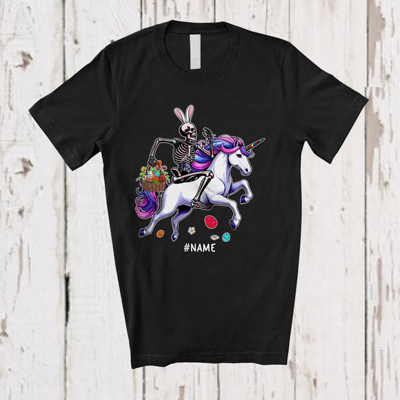 Personalized Bunny Skeleton Riding Unicorn; Humorous Easter Eggs Hunting; Custom Name Family T-Shirt