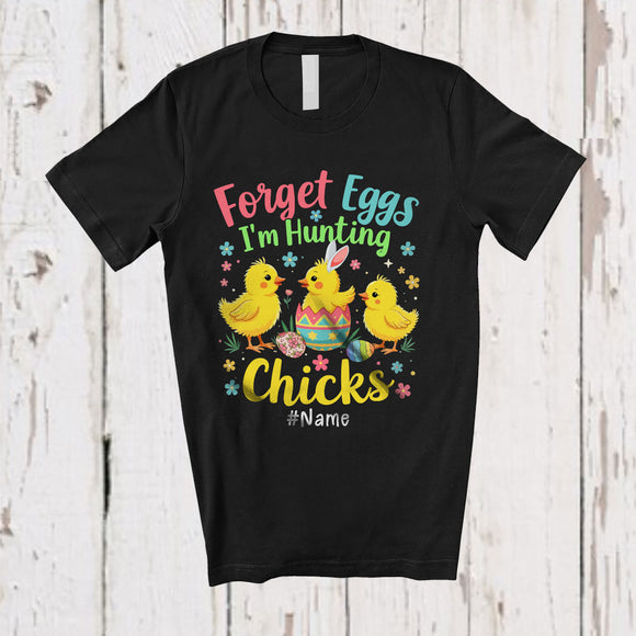 Personalized Custom Name Forget Eggs I'm Hunting Chicks; Lovely Easter Three Chickens; Family T-Shirt