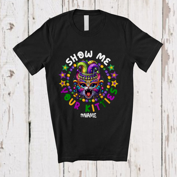 Personalized Show Me Your Kitties; Amazing Mardi Gras Jester Hat Custom Name Kitten Cat T-Shirt