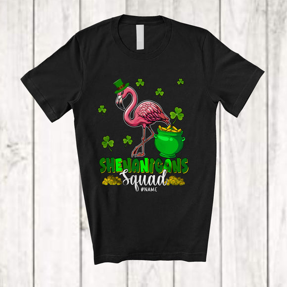 Personalized Custom Name Shenanigans Squad; Amusing St. Patrick's Day Flamingo Bird; Family T-Shirt