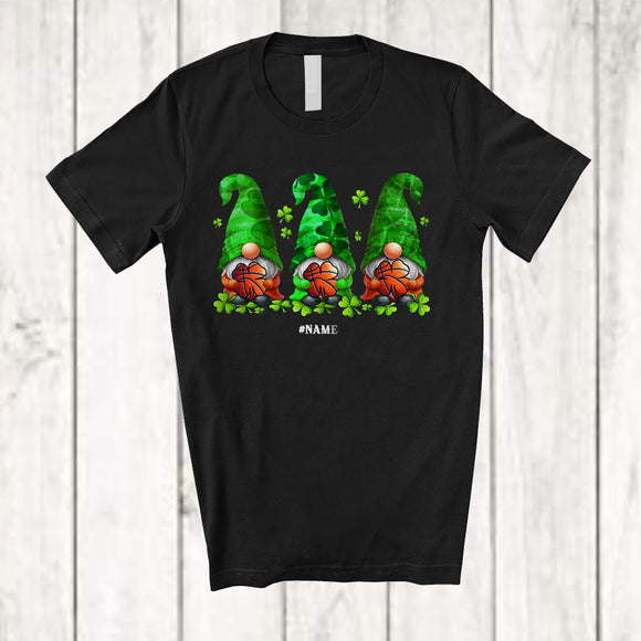 Personalized Custom Name Three Gnomes Basketball Player; Lovely St. Patrick's Day Sport Shamrock T-Shirt