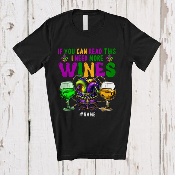 Personalized If You Can Read This I Need More Wines; Amazing Mardi Gras Beads Drinking T-Shirt