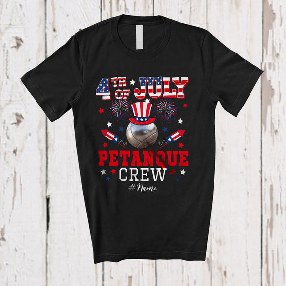 Personalized 4th of July Petanque Crew; Joyful Custom Name Patriotic Petanque Equipment T-Shirt