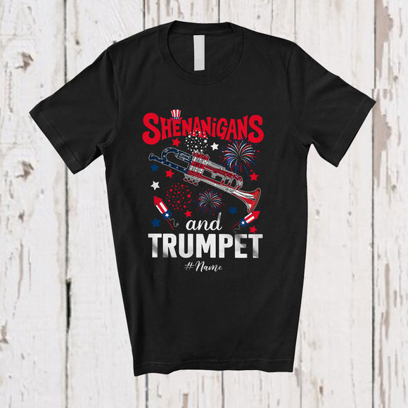 Personalized Shenanigans And Trumpet; Lovely 4th Of July Custom Name Trumpet Player; Patriotic T-Shirt