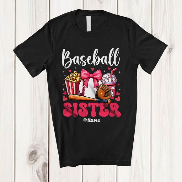 Personalized Custom Name Baseball Sister; Adorable Mother's Day Bow Tie Sport Player; Family T-Shirt
