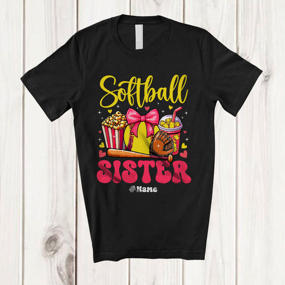 Personalized Custom Name Softball Sister; Adorable Mother's Day Bow Tie Sport Player; Family T-Shirt