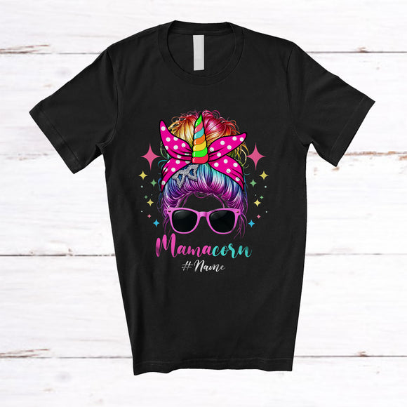 Personalized Mamacorn; Adorable Mother's Day Unicorn Custom Name Mama Messy Bun Hair T-Shirt